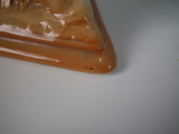 speck of kiln detritus caught in the glaze to the base front.