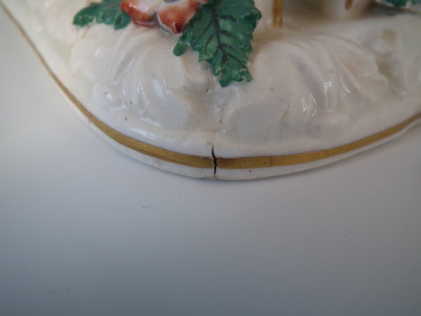 CONDITION: Fair. Chips to some of the flowers and leaves and one to the lower base edge.