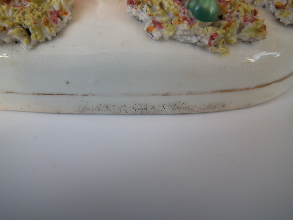 Dull gilt base line and embellishment. Flatback, decorated only to the front.