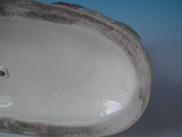 network of shrinkage hairlines to underside of base with one running up reverse of base.
