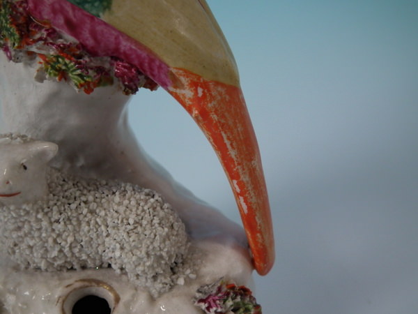 Staffordshire parrot & lamb quill holder