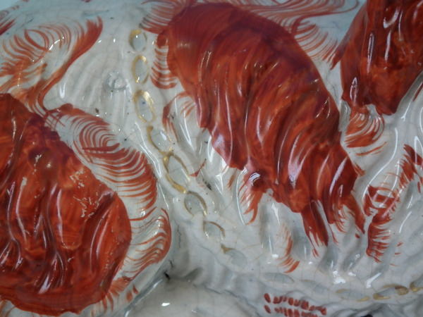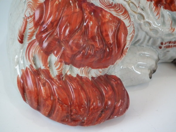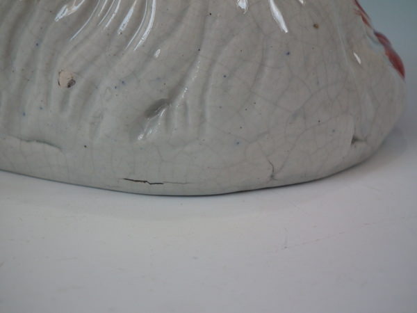 shrinkage cracks to lower base edge and between some of the dog's legs;