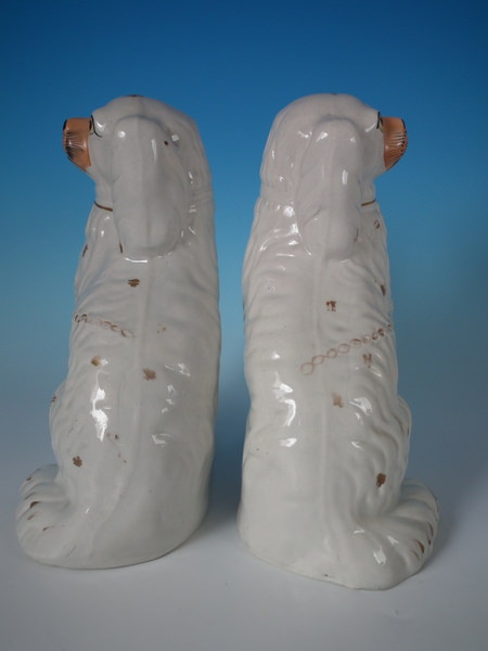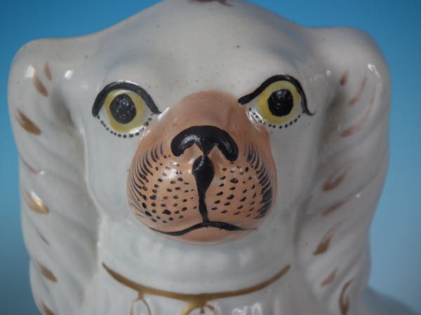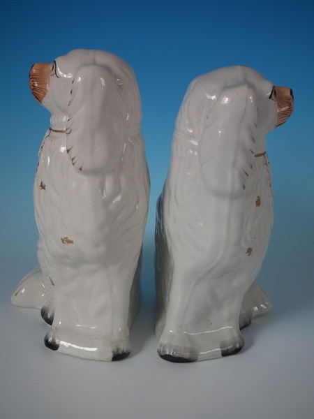 Victorian, circa 1860. Tallest is 9.4ins high, 7.1ins wide, 4.5ins depth. Pair of Staffordshire figures which feature a spaniel,