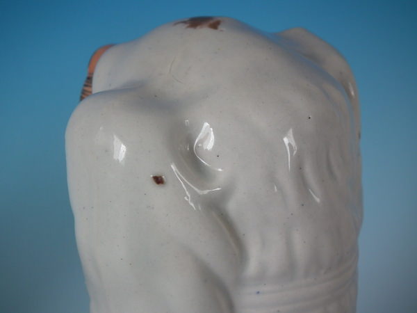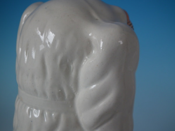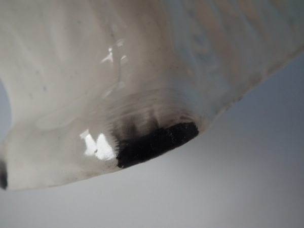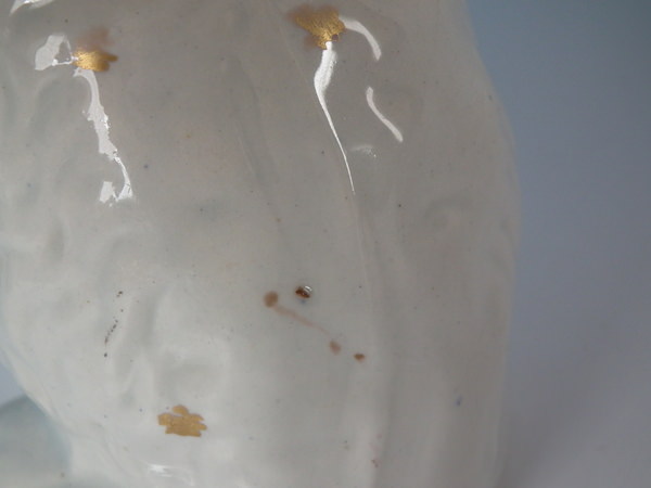 KILN EFFECTS: kiln detritus caught in the glaze to the left ear and lower back.