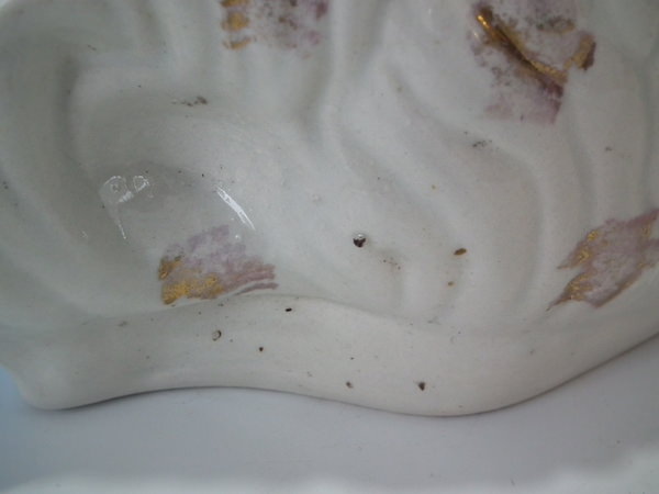 KILN EFFECTS: a few specks of kiln detritus caught in the glaze to the tail;