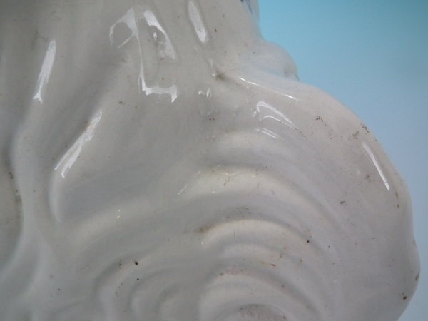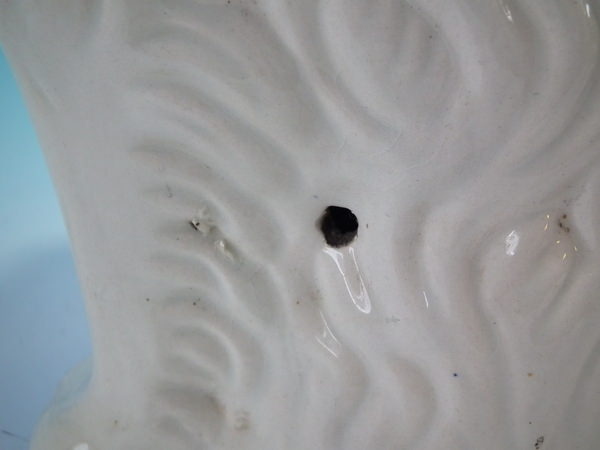 KILN EFFECTS: piece of kiln detritus caught in the glaze to tail and to reverse;
