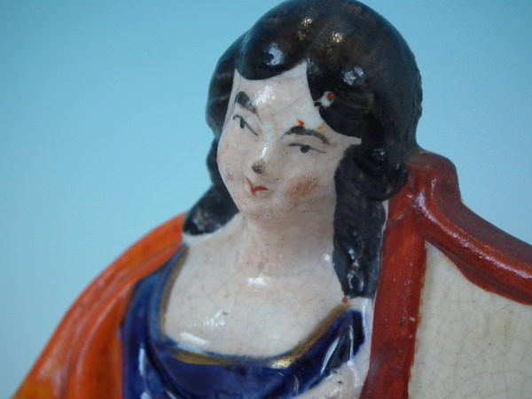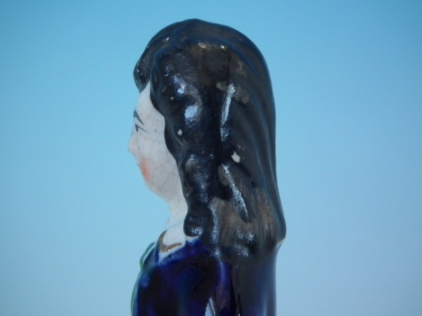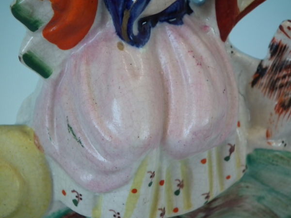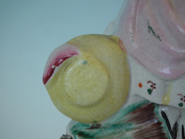 flecks of stray coloured glaze to girl's hat and skirt.
