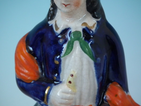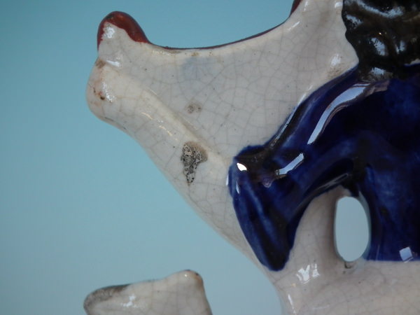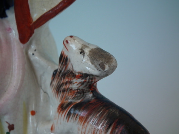 Male: Good. No restoration. A few paint losses to boy's hair and goat's horns.