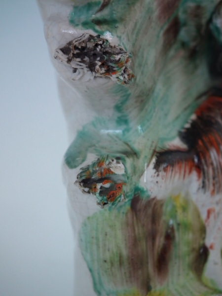 KILN EFFECTS: flecks of stray coloured glaze to the boy's face.