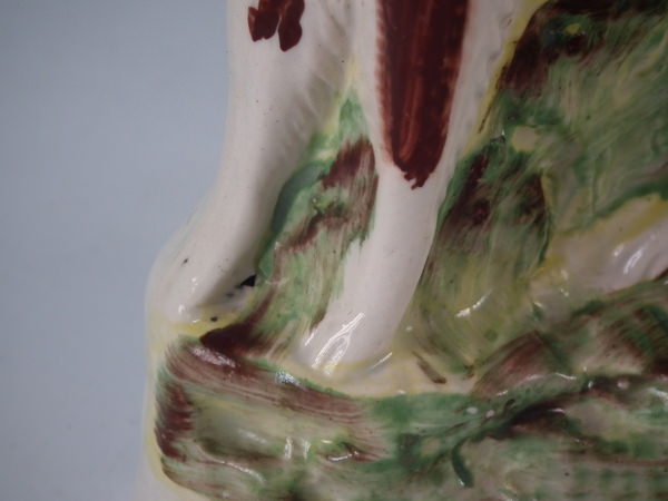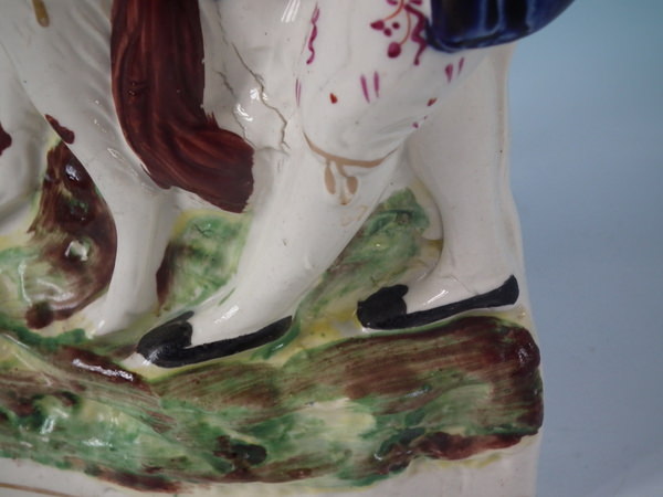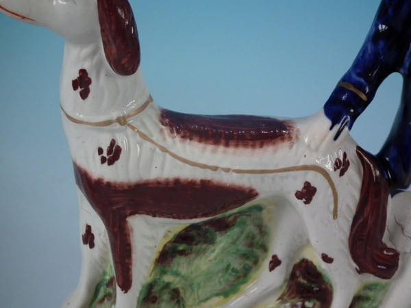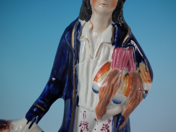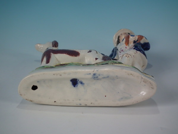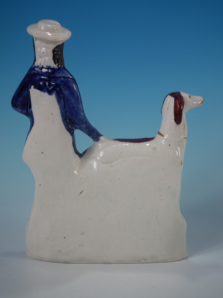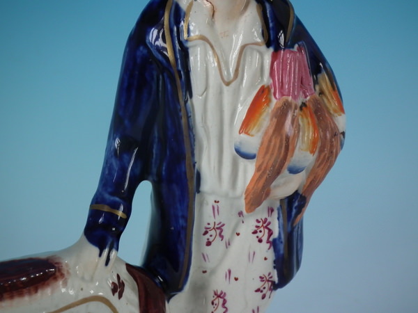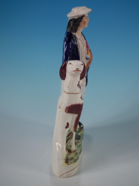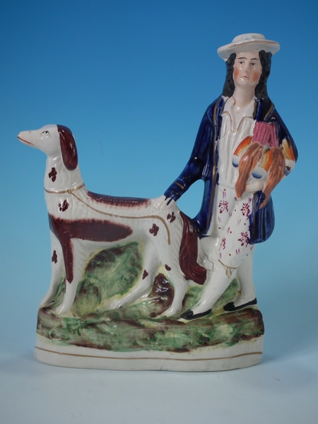 Victorian, circa 1860. 9.1ins high, 6.7ins wide, 2ins depth. Staffordshire figure with a hunting theme which features a boy