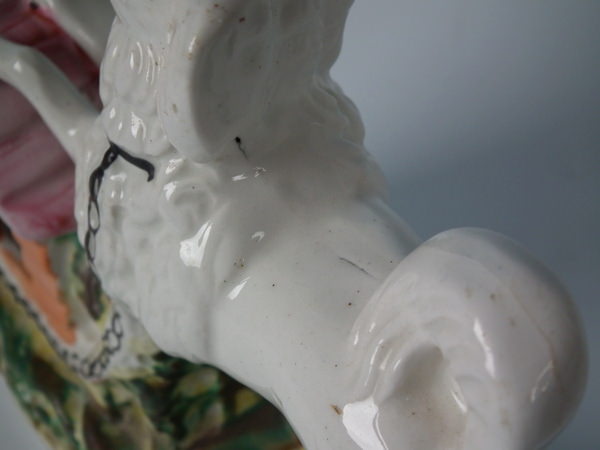 over glazed shrinkage lines to the spaniel's back and top of left leg;