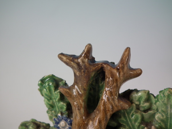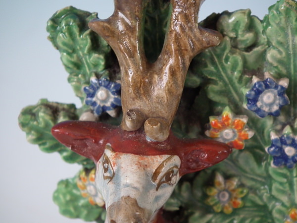 Small chips to both small horns at front of stag's head and one leaf to bocage (all have been glazed over during manufacture).
