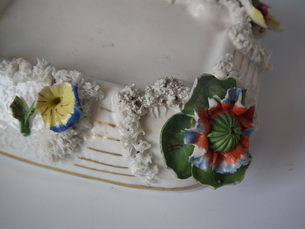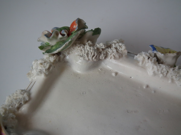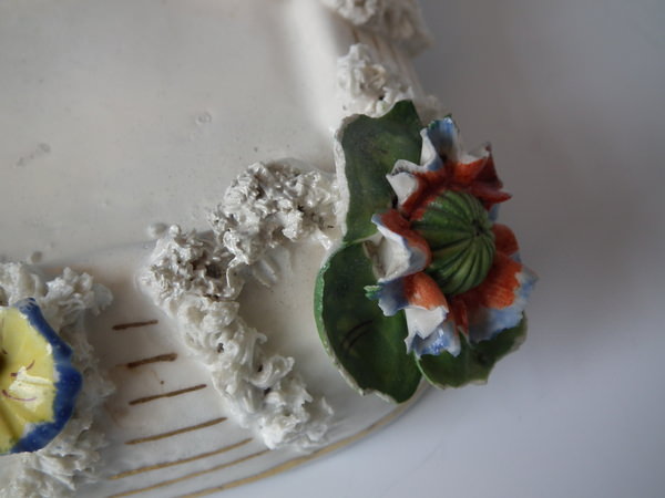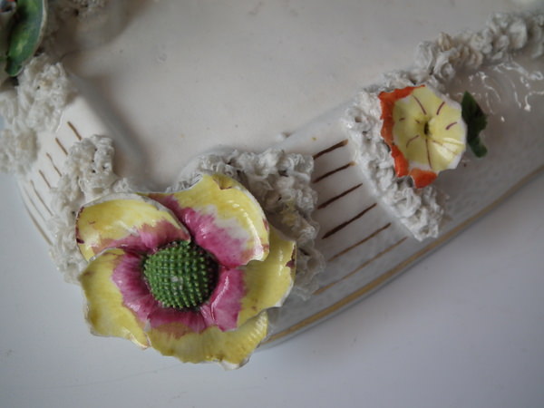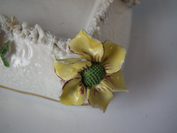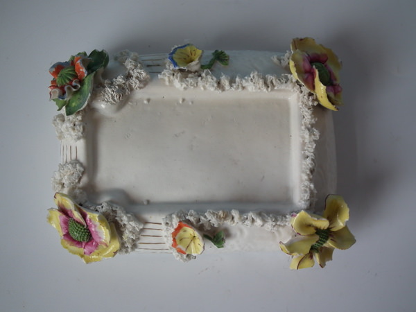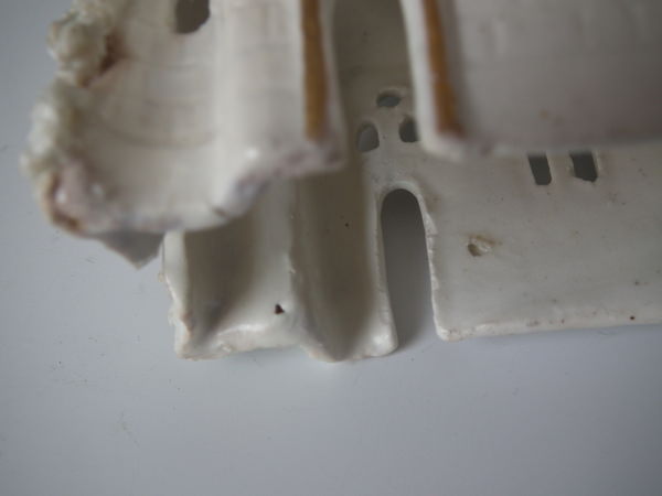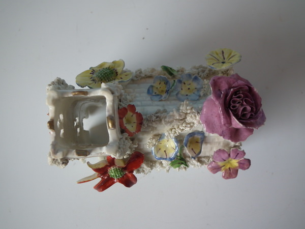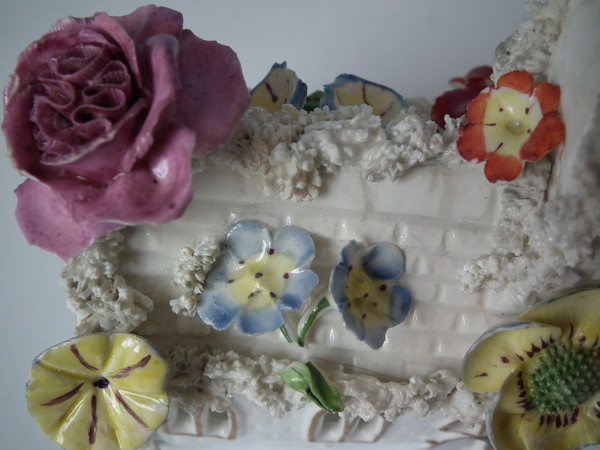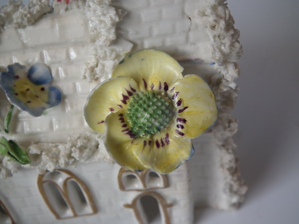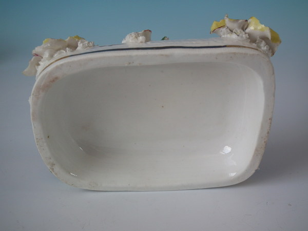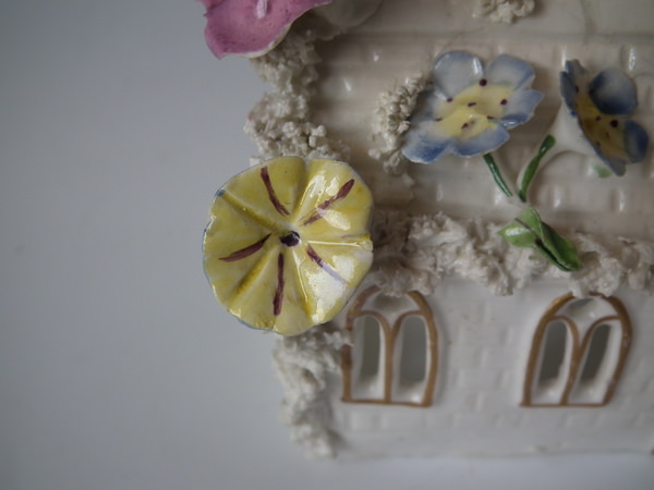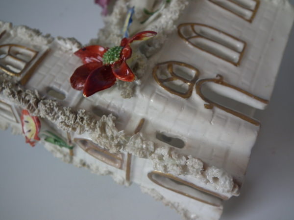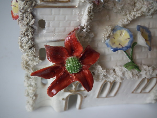 Victorian, circa 1860. 5.5ins high, 5.3ins wide, 4.1ins depth. Staffordshire pastille burner which features a church adorned with flowers, stood on a rectangular detachable base.