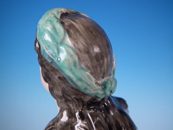 KILN EFFECTS: tiny glaze pops to his headscarf;