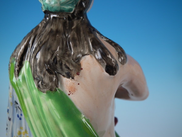 flecks of stray coloured glaze to his neck and back.