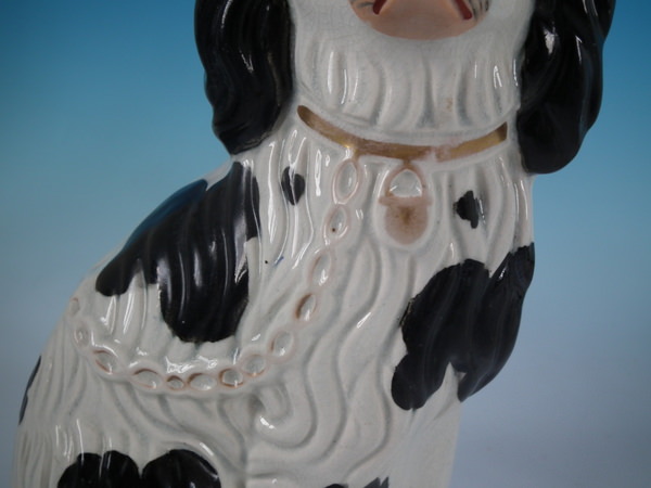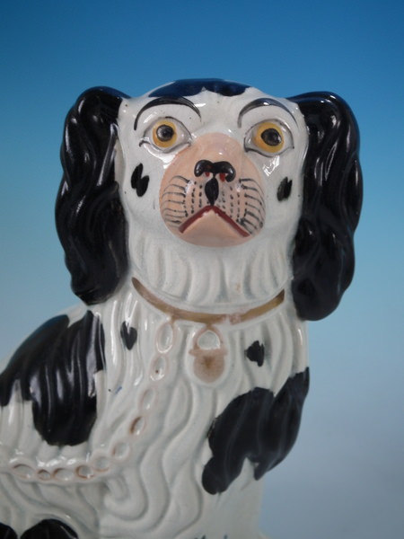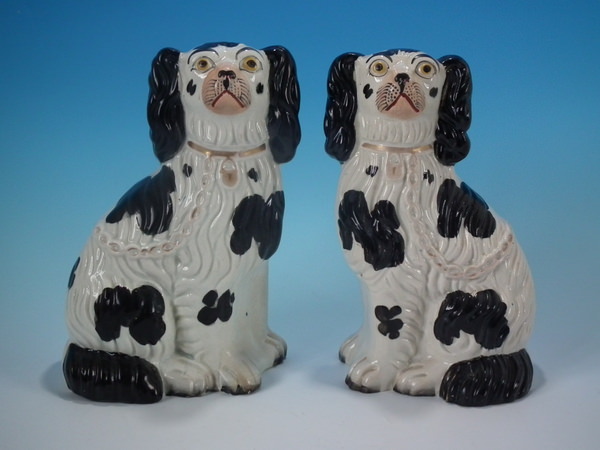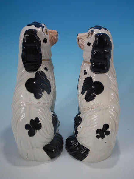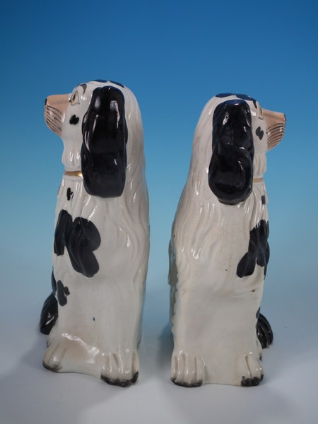 Pair Staffordshire No.3 black and white spaniels
