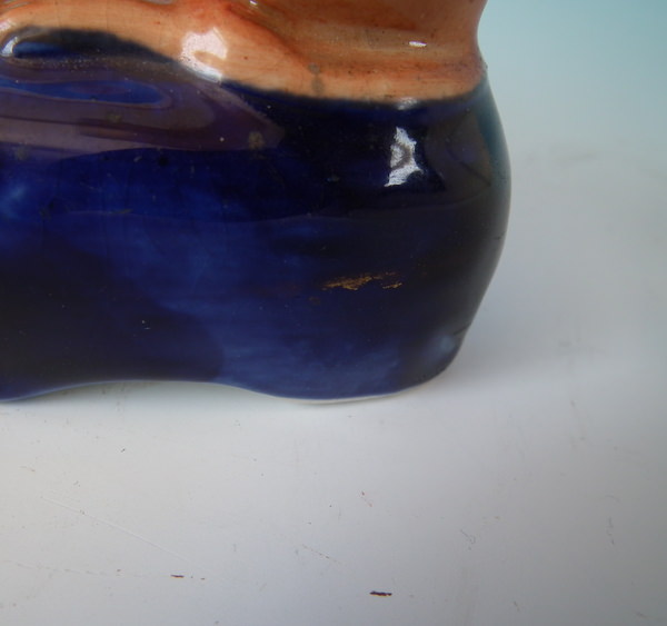 Dull gilt base line and embellishment. Decorated 'in the round' - decoration to front and reverse.