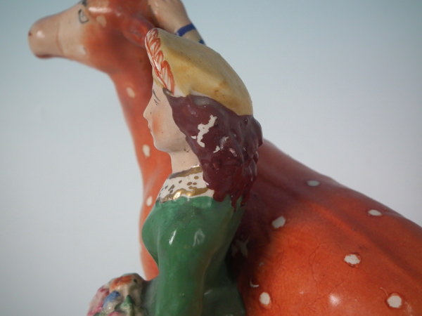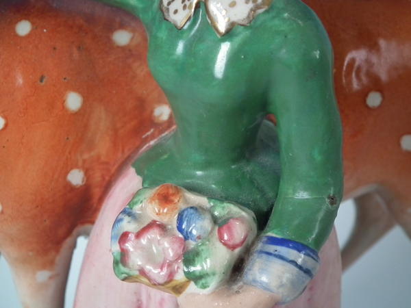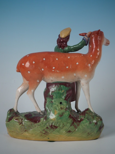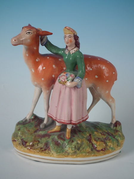 Kent Staffordshire figure which features a girl with a doe, stood on a shaped base.