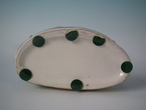 Bright gilt base line and embellishment. Decorated 'in the round' - decoration to front and reverse. Vent hole to the reverse.