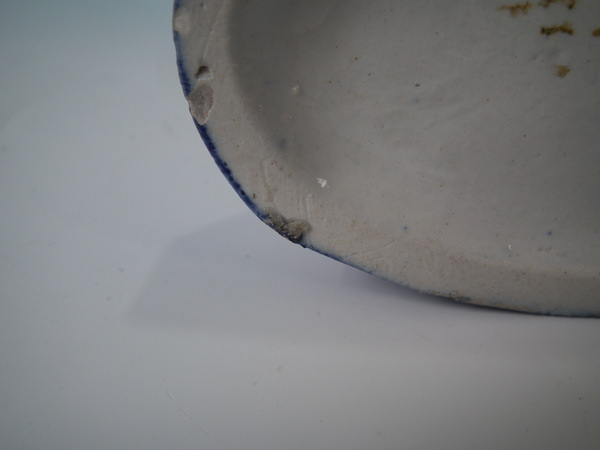 kiln detritus caught in the glaze to the base, mainly to the underside;