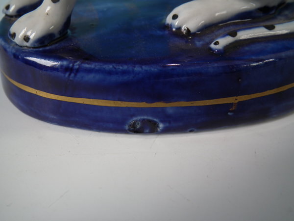 Pair Staffordshire Dalmatians on cobalt blue bases