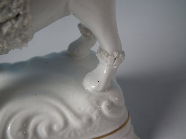 RESTORATION. Stabilised and retouched cracks where poodles four feet join base.