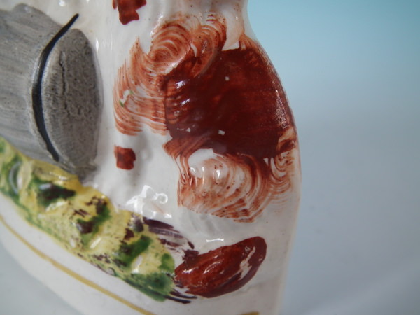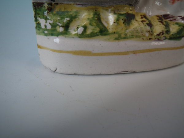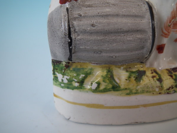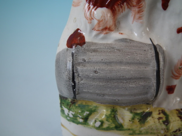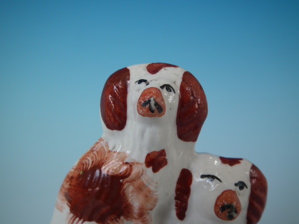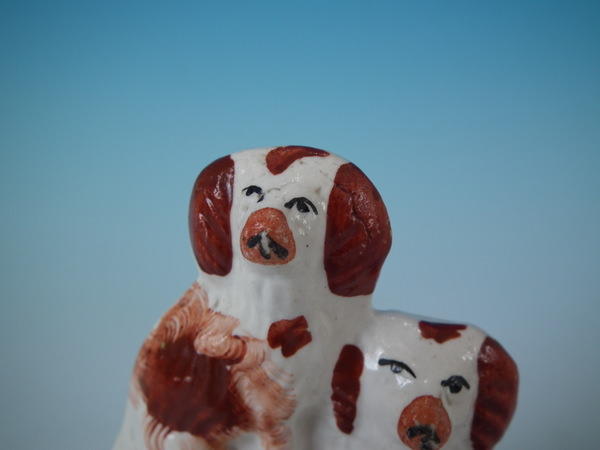 Small Staffordshire spaniels with barrel figure
