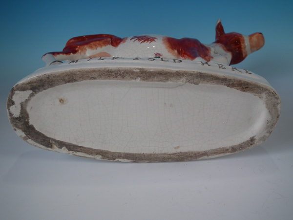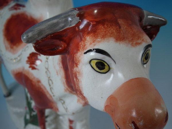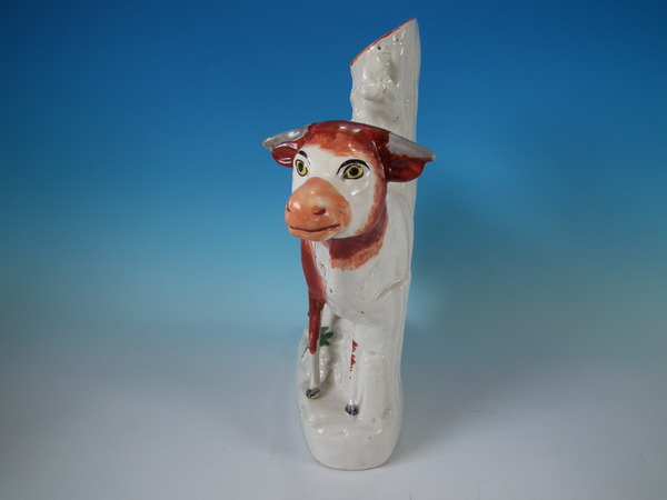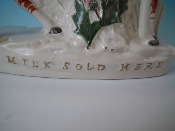 Staffordshire 'MILK SOLD HERE' cow spill vase