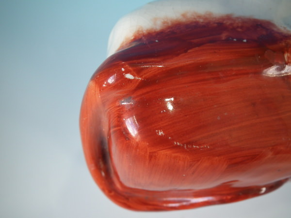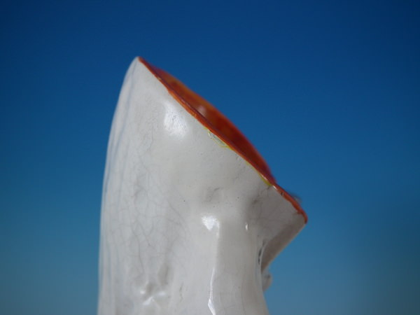 Russet and white version. Dull gilt title and embellishment. Flatback, decorated mainly to the front.
