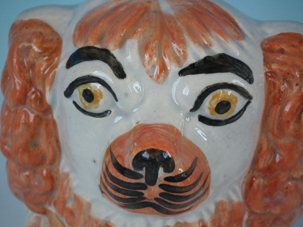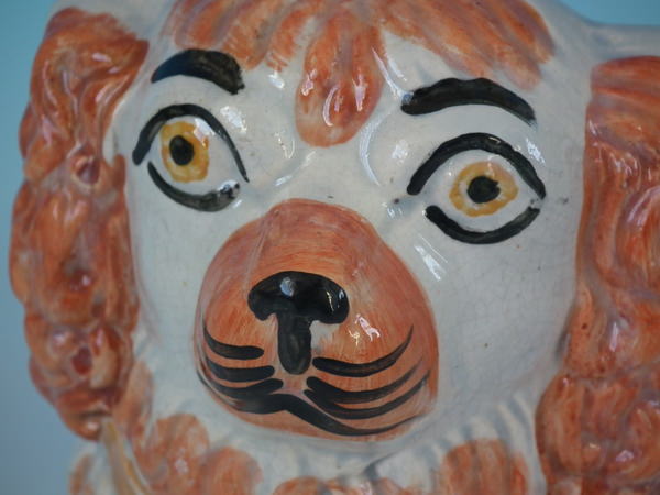 Pair Staffordshire spaniel head sash window stops