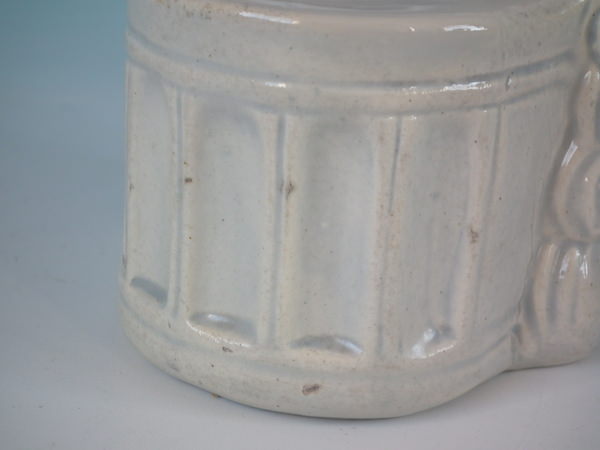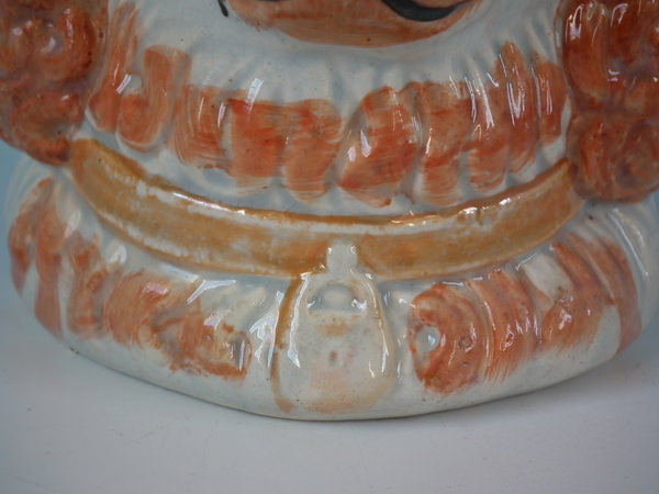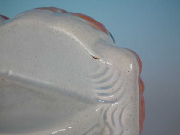 KILN EFFECTS: small piece of kiln grit caught in the glaze to the face;