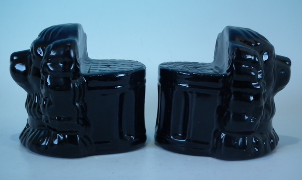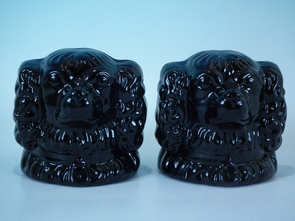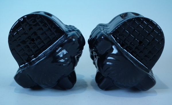 Pair of Staffordshire sash window stops which feature a spaniel's head, resting directly on the ground, no base.