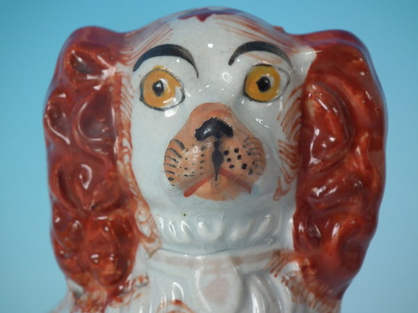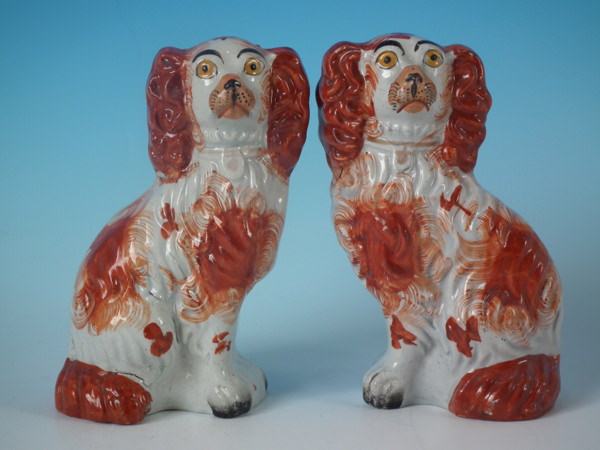 Pair Staffordshire russet & white No.6 spaniels