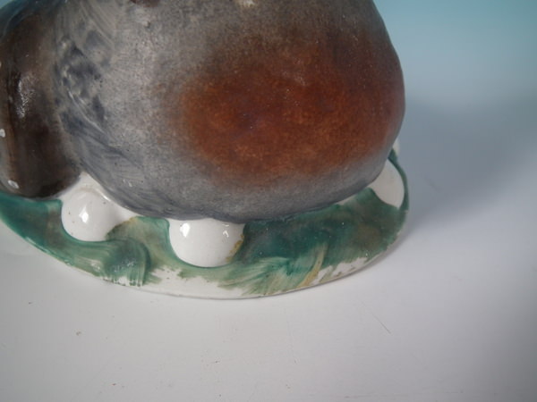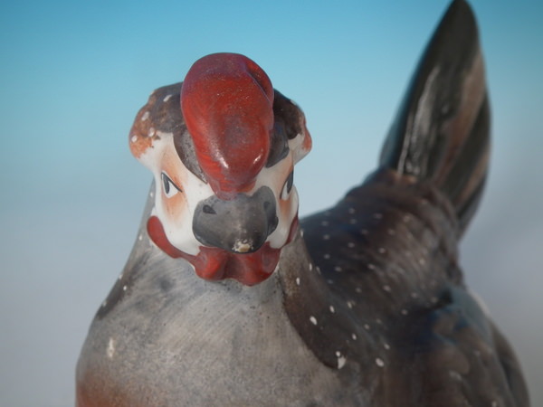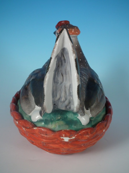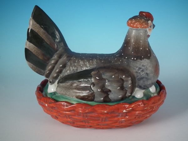 Victorian, circa 1860. 7.2ins high, 8.3ins wide, 6.4ins depth. Staffordshire tureen with cover which features a hen