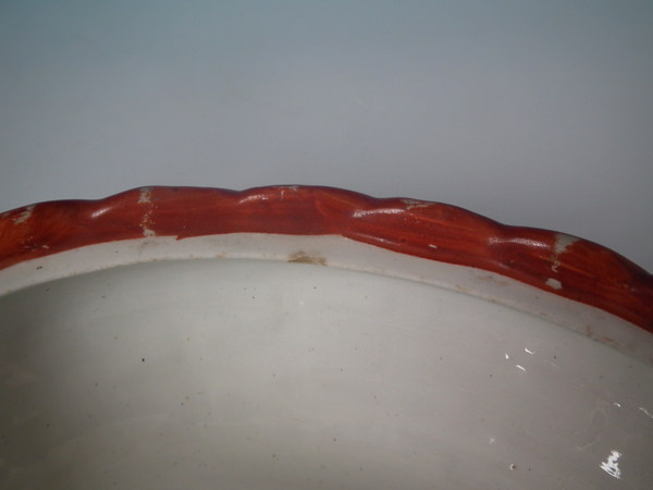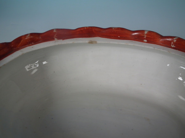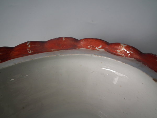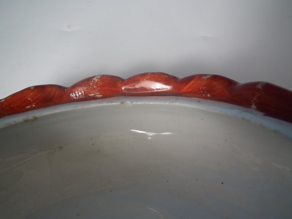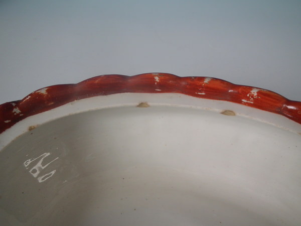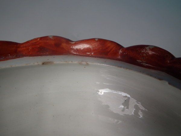 KILN EFFECTS: three small over glazed chips to the inner rim.