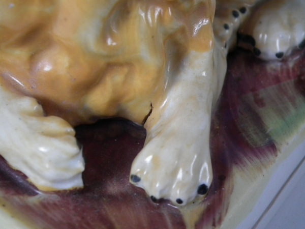 KILN EFFECTS: shrinkage cracks to left hind leg,