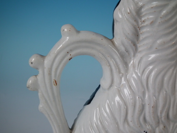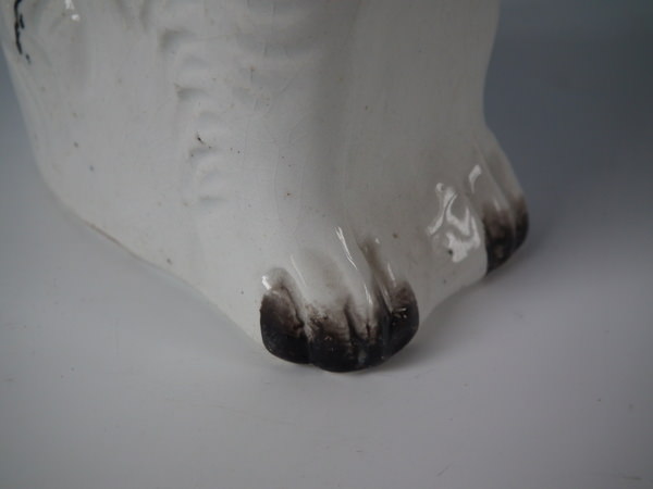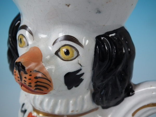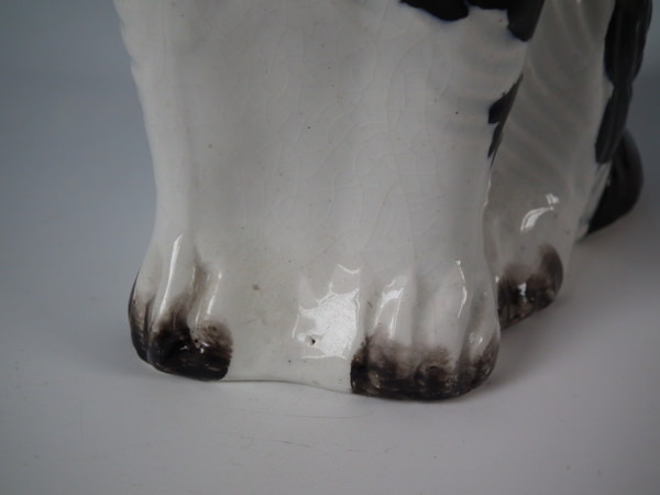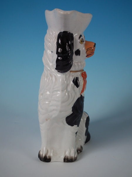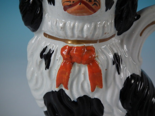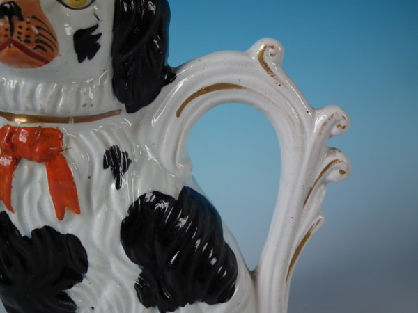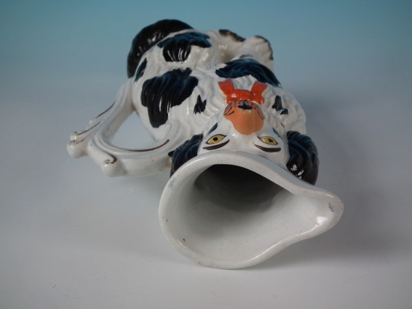 Staffordshire black & white spaniel with bow pitcher