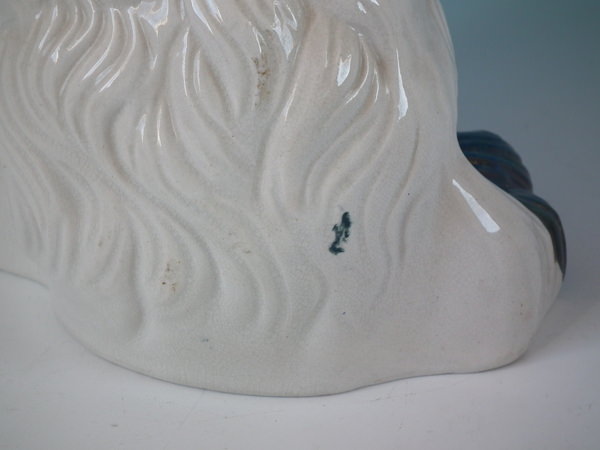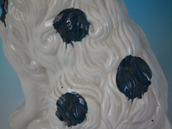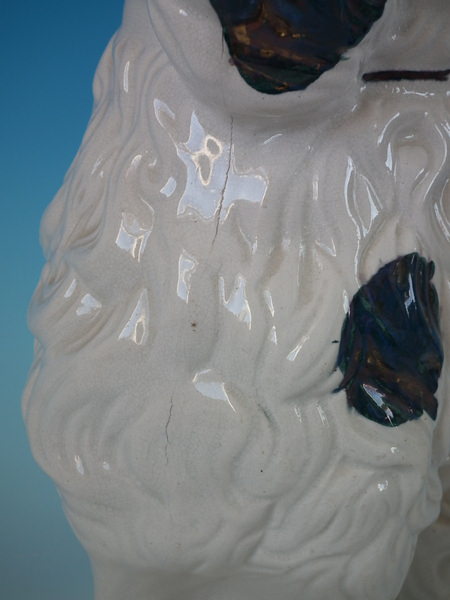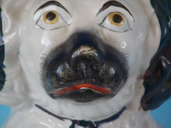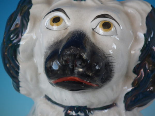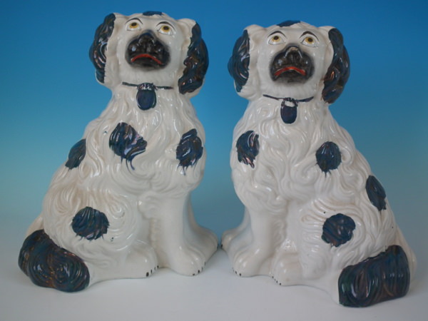 Pair of Staffordshire figures which feature a spaniel, seated directly on the ground, no base.