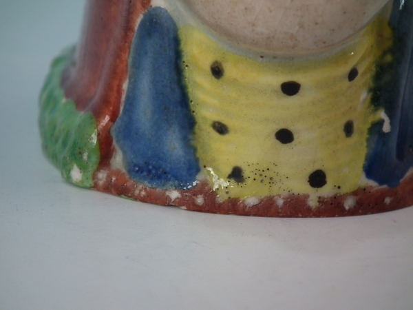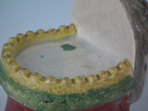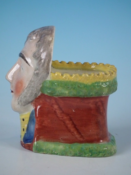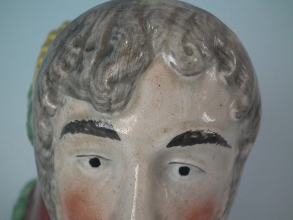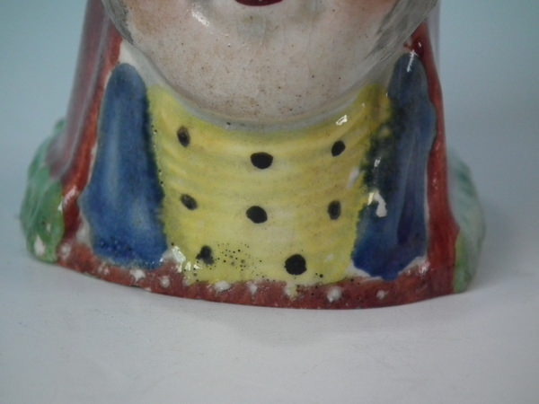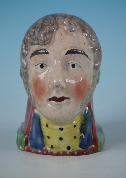 Staffordshire pearlware sash window stop which features a gentleman's head, resting directly on the ground, no base.