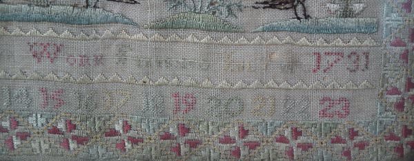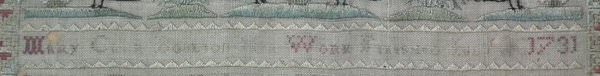 Signed and dated 'Mary C???? Boulton Her Work Finished July 1731.