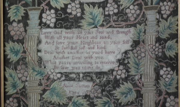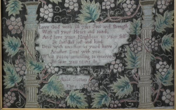 Signed and dated 'Elizabeth Sutton 1742' and 'Alice Sutton 1746'.