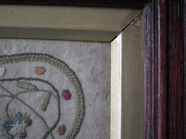George III, dated 1813. 16.25ins by 12ins wide. 1813 Sampler by Betsy Steeds. Framed in an old wood frame with gilt slip and glass.