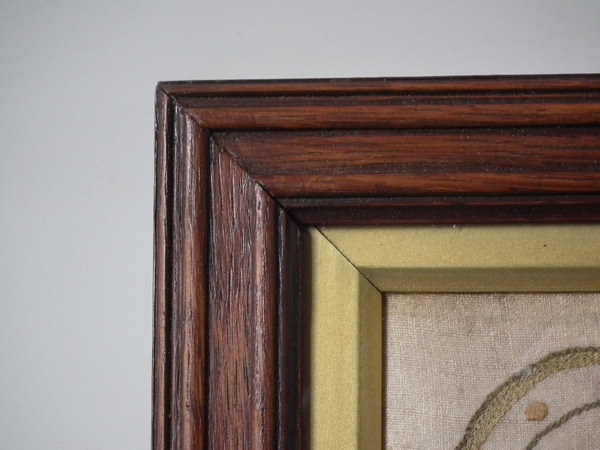 Neatly and evenly stretched. Frame in very good condition, ready to hang.