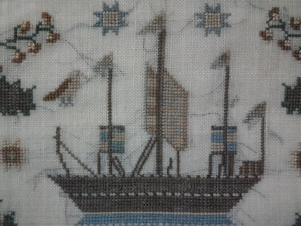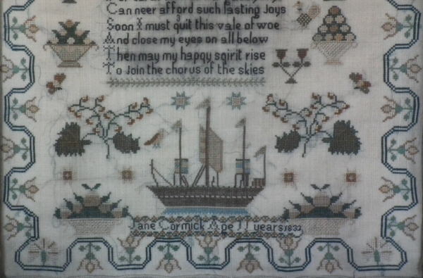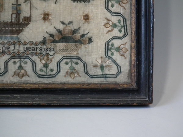 William IV, dated 1832. 15.25ins by 12.75ins wide. 1832 Ship Sampler by Jane Cormick.