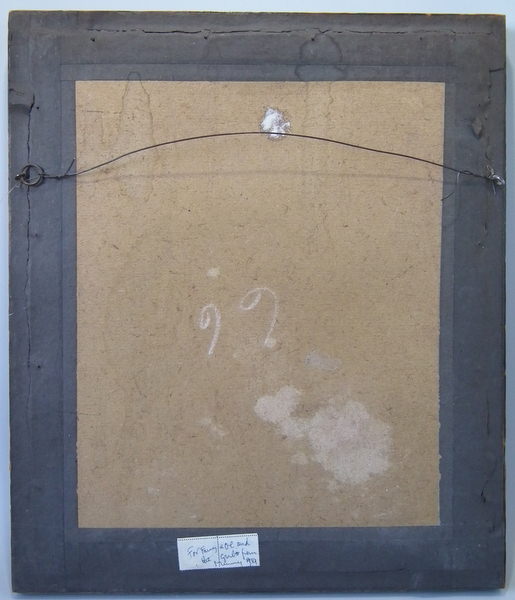 Tacked to wood with board backing.