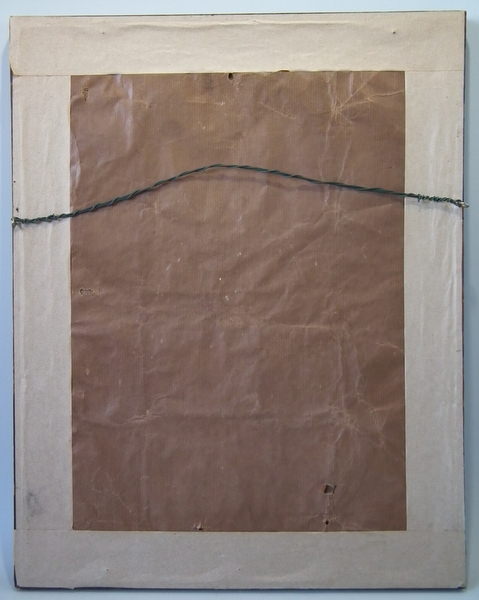 Stitched to linen with board backing.