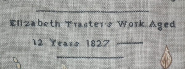 Signed and dated 'Elizabeth Tranters Work Aged 12 Years 1827'.