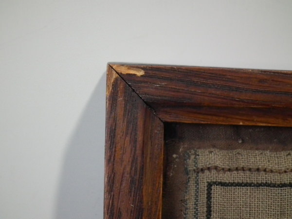 Framed in an old wood frame with glass.