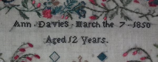 Signed and dated, 'Ann.Davies.March the 7.1850 Aged 12 Years.'