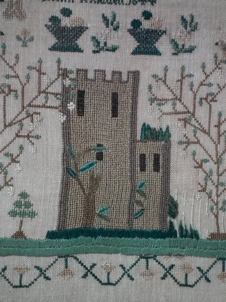 Minor stitch losses to the castle fence.